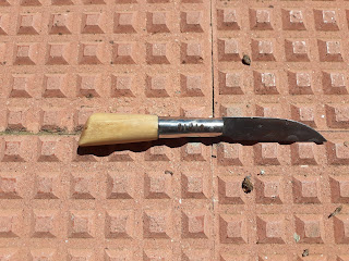 Hoja hecha con una vieja lima, tiene 100 mm de larga y 3 mm de espesor
